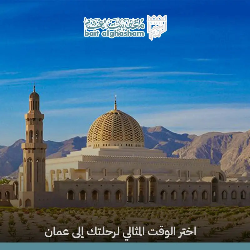 • الصيف (يوليو وأغسطس): ذروة الزحام في صلالة (محافظة ظفار) بسبب مهرجان الخريف، حيث يفضل الحجز مسبقاً عبر مجموعة بيت الغشام لضمان توفر السكن والجولات.